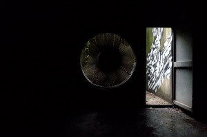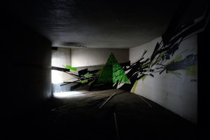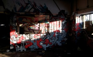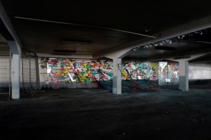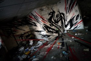 Un vestige du mercantilisme tremble sous le périf’. Il grelotte, ouvert aux quatre vents, loin des lustres du commerce. Il n’appâte plus le client… Brûlé à vif, il abrite ceux qui se terrent. Les exclus s’y cachent, sans papier, sans pays, sans véritable lit. Mais de là aussi, ils en sont exclus… L’abandon d’un immense tombeau vide ! Un sanctuaire bientôt. Le mausolée d’une culture qu’on enterre et qu’on célèbre, qu’on bénit et qu’on dépasse. Une offrande picturale au temps des grottes modernes.