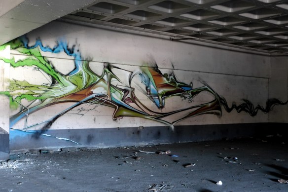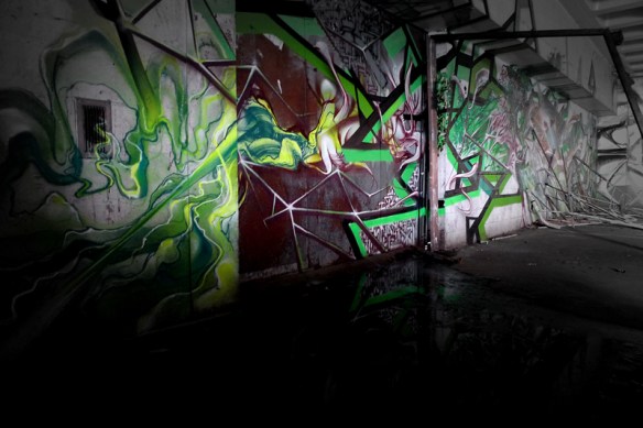 Fallait mettre un peu de fluo dans tout ça ! Faire scintiller la toile d’araignée, l’embrocher au reste d’un vélo, étirer ça dans la pénombre, déjouer la surveillance locale…