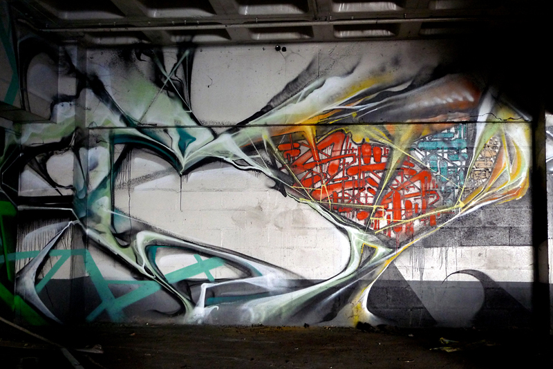 Fallait mettre un peu de fluo dans tout ça ! Faire scintiller la toile d’araignée, l’embrocher au reste d’un vélo, étirer ça dans la pénombre, déjouer la surveillance locale…