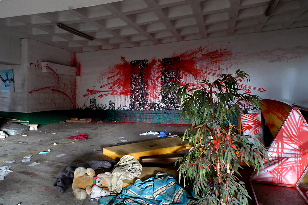 Brûlé à vif, il abrite ceux qui se terrent. Les exclus s’y cachent, sans papier, sans pays, sans véritable lit. Mais de là aussi, ils en sont exclus…
