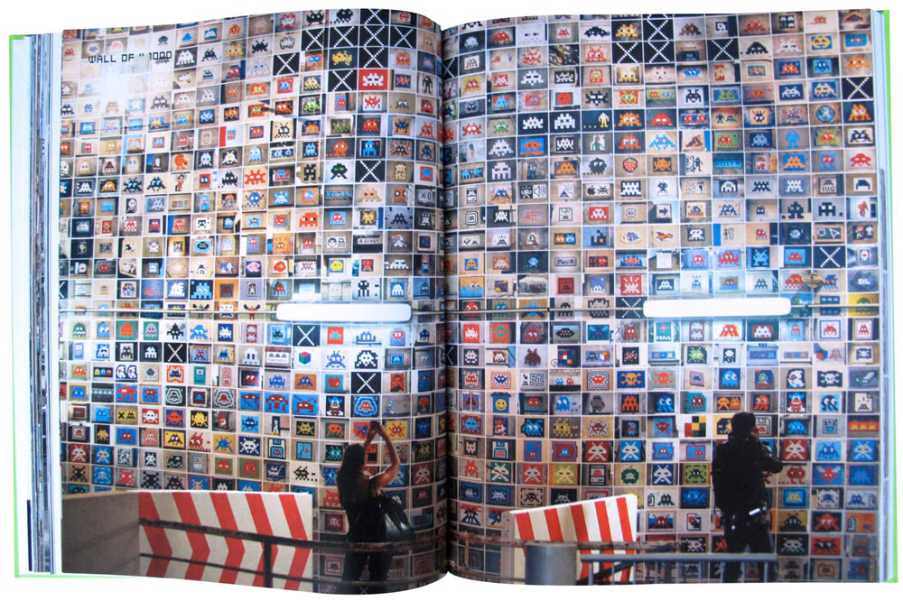 Two weeks after the Mausoleum’s exhibition opening, Invader’s news book, The Invasion of Paris 2.0, came out. In it, he documents the final stages of his Parisian invasion, thanks to 1400 pictures.Page 58-59, as he is photographing his 911th Invader pasted on the capital’s walls, two strangers are walking in his direction. In the top right side of the image, he added the following text: