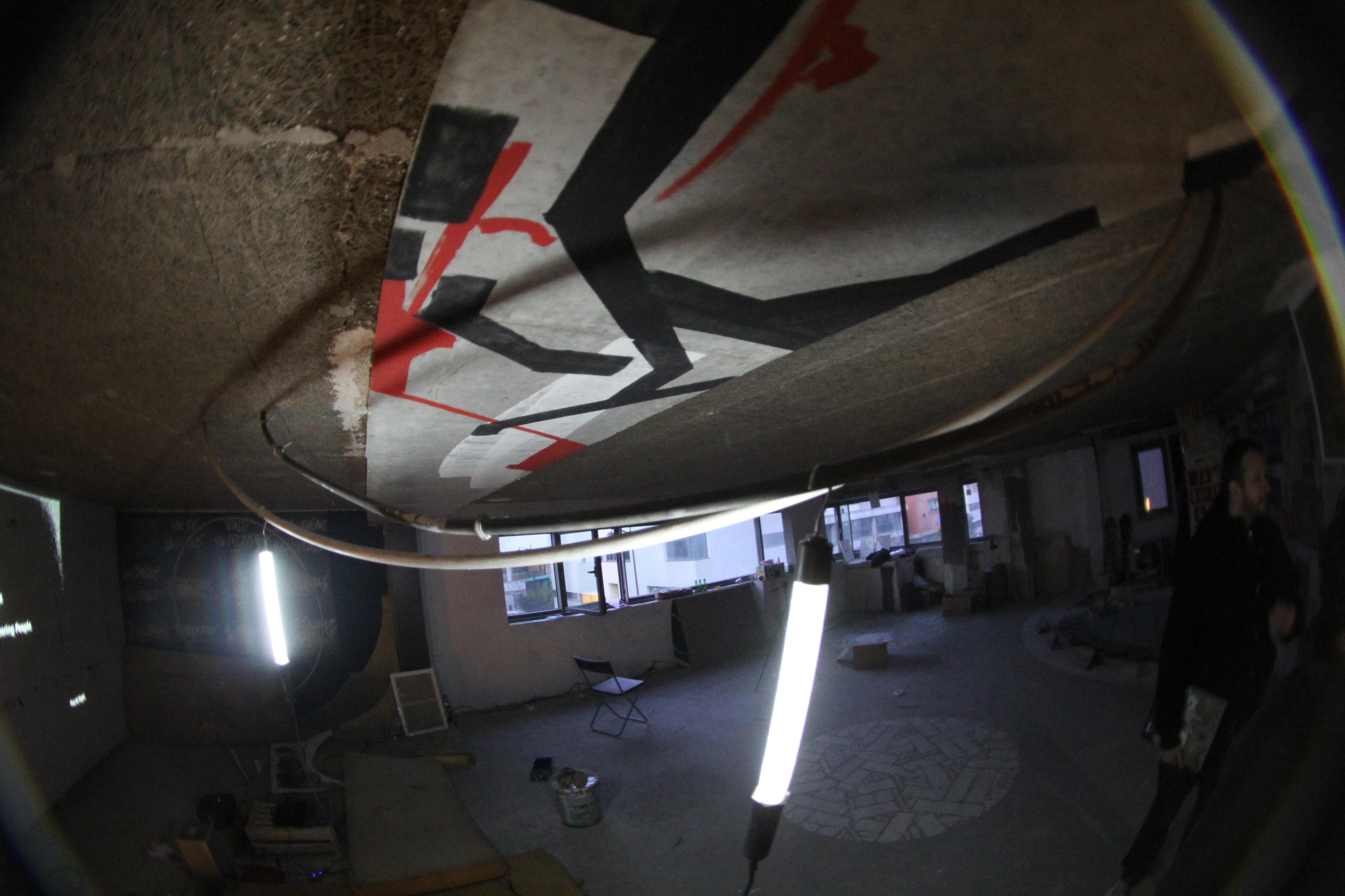Alëxone a regardé trop de vidéos des Beastie Boys et de skate. Aprés avoir passé des années à chercher un fish-eye abordable, il a enfin réussit à trouver ce Peleng 8mm sur le net pour 230 dollars. Deux semaines aprés l’avoir commandé, il reçut son objectif depuis la Biélarossie, empacketé dans du papier journal russe et de la ficelle. Comme un service, il est venut une seconde fois dans l’exposition Mausolée pouir photographié les installations que nous avions faite avec Dem189, Swiz, Philipe Baudelocque, Mr Qui, Hobz et Honda des Turbo Design, Seb174, Legz et Sirius et Saten des 156. Tous les objets, documents et matèriaux montrés ici ont été ramenés du Mausolée.