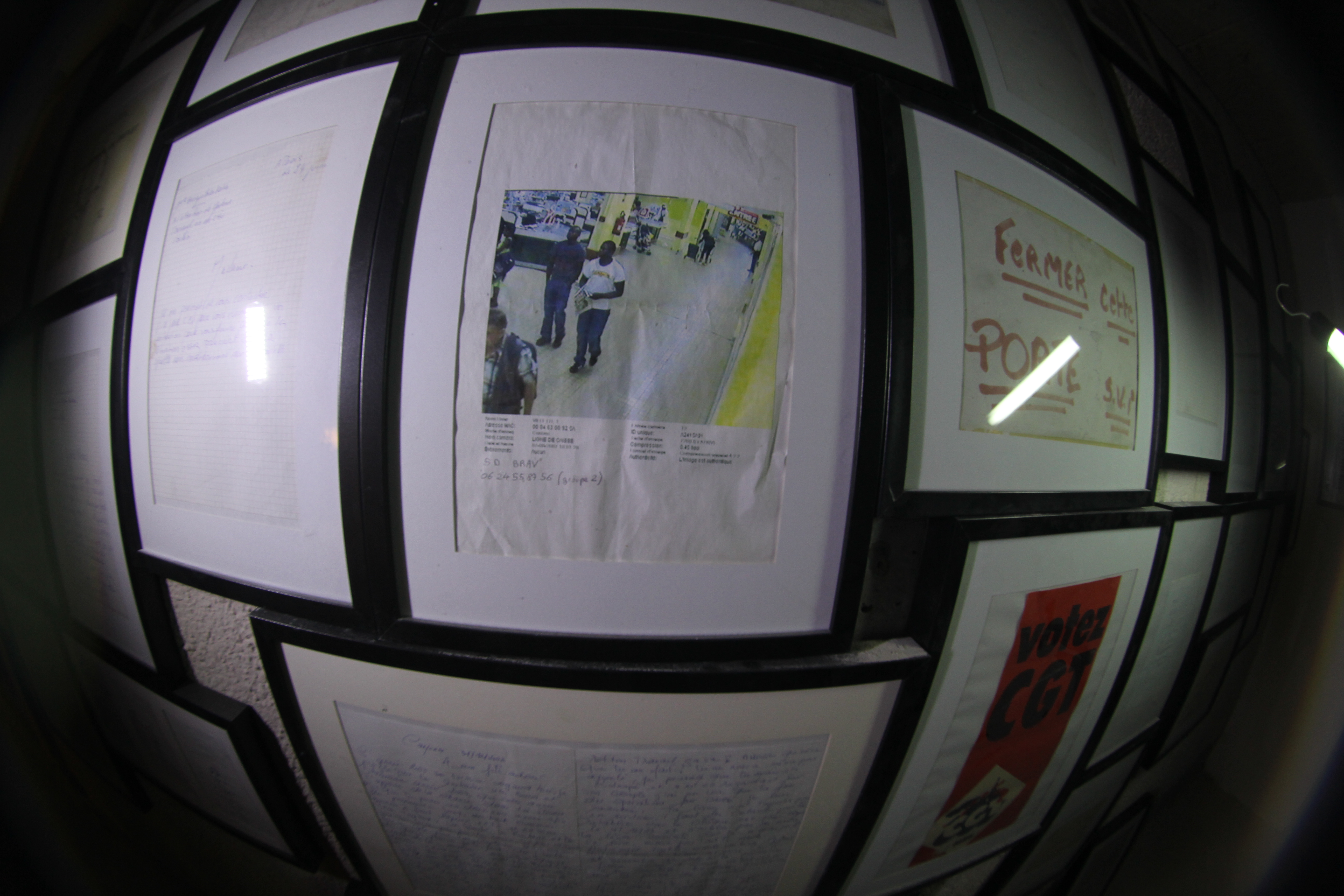 Alëxone watched too many Beastie Boys videos. After spending years looking for an affordable fish-eye, he finally found this 8mm Peleng on the internet for a cool 230 dollars. Two weeks after ordering it, he received a package from Belorussia wish his precious lens wrapped in Russian newspaper and thread. As a service, he agreed to come to the Mausoleum’s show a second time to take more pix of the installation we put together with Dem189, Swiz, Philipe Baudelocque, Mr Qui, Hobz and Honda from the TurboDesign, Seb174, Legz, Sirius and Saten. All the objects, letters and documents shown here were taken from inside the Mausoleum.