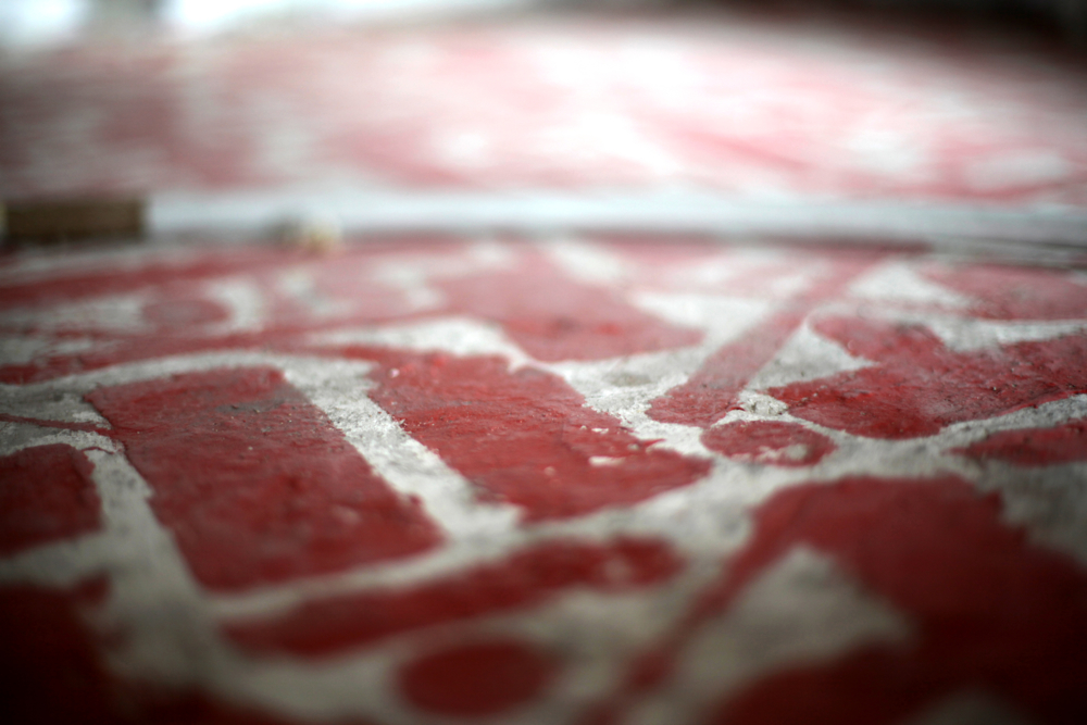 Dernier post de la série. C’est ailleurs que la mémoire du mausolée vit. Dans un loft bétonné où des bribes du temple se reconstituent. Matières en main et peintures fraîches pour l’occasion. En prime, le bouquin. De face, une promenade caméra au poing…