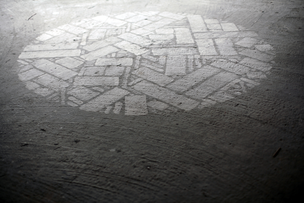 Last post of the series. Its elsewhere that the Mausoleum’s memory lives. In a concrete loft were fragments of the temple are pieced together. Matter in hand and fresh paint specially for the occasion. The book as a bonus. Full frontal, a small stroll with a hand held camera.